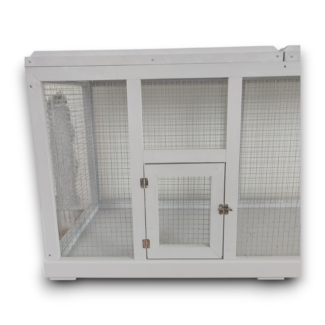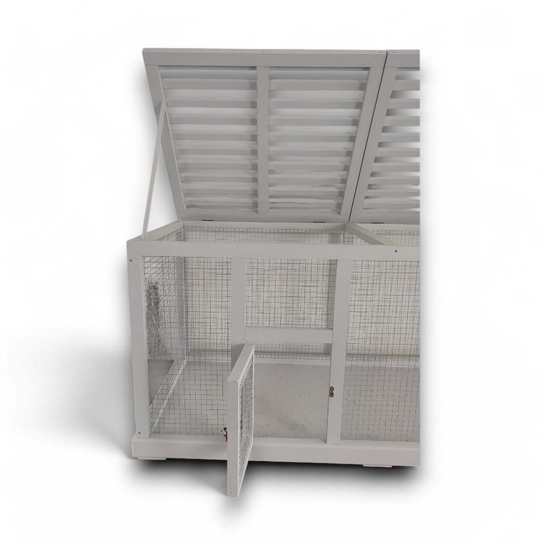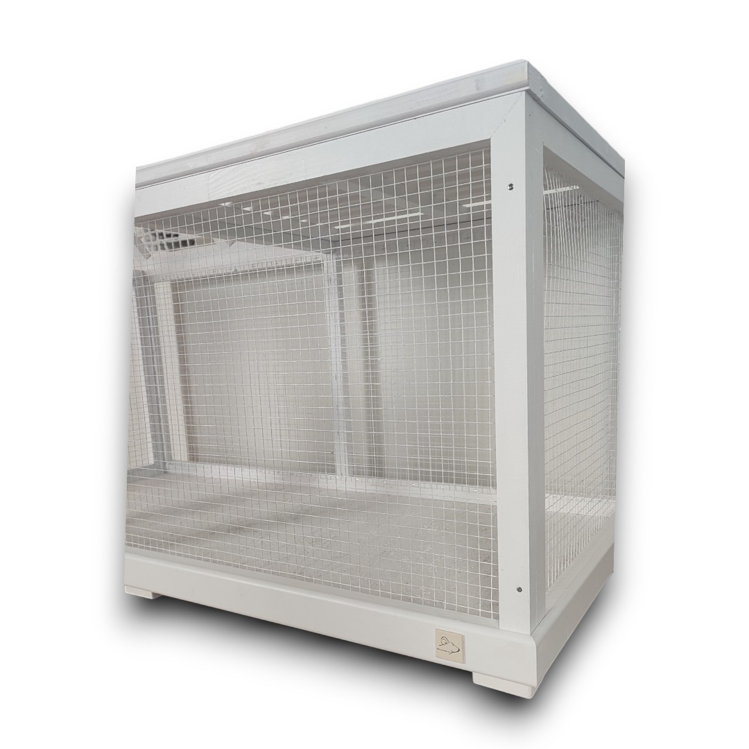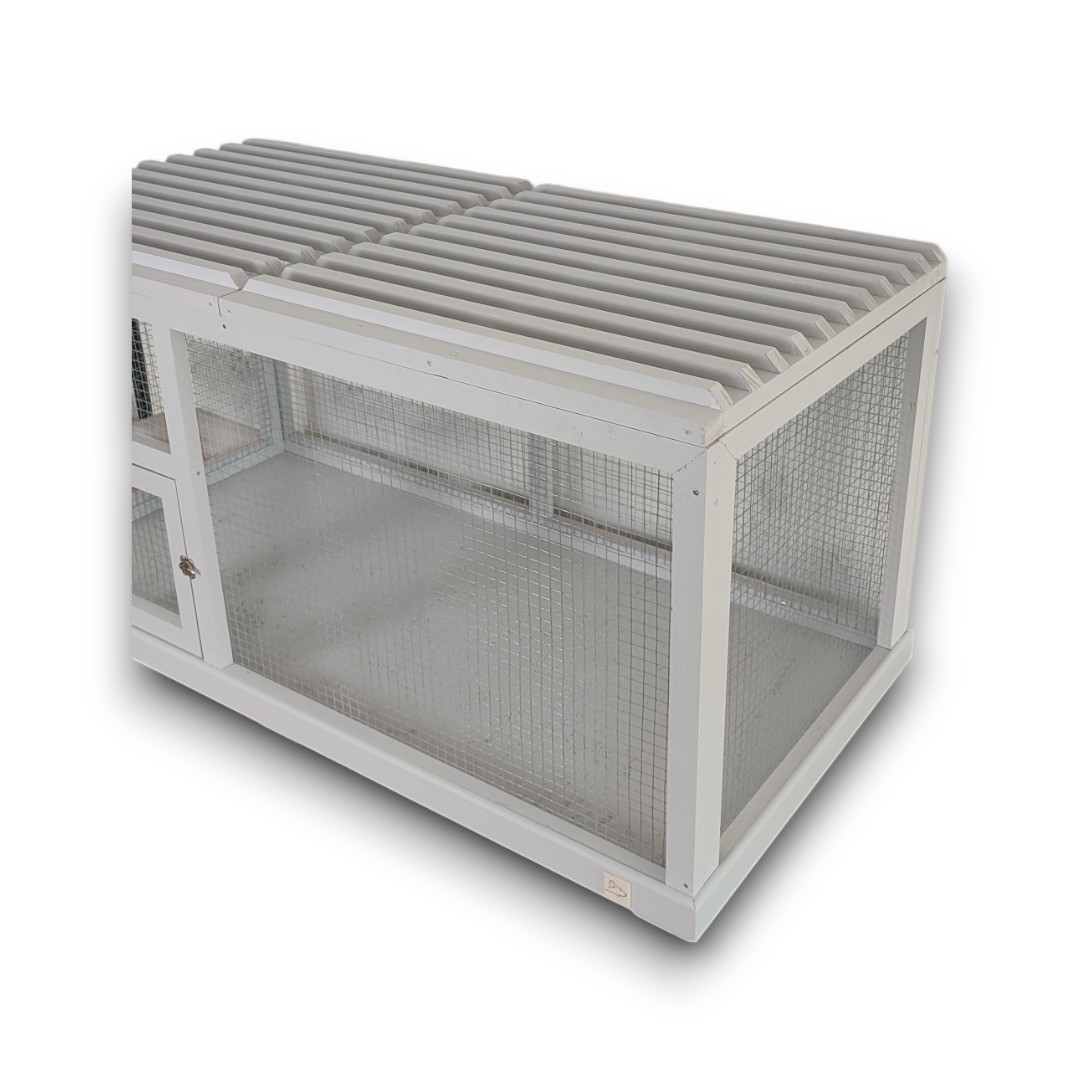 Drewniana klatka COLL GREY to połączenie praktyczności i elegancji. Wyróżnia się stylową siatką oraz szarym kolorem, który został uzyskany dzięki bezpiecznym, ekologicznym farbom.