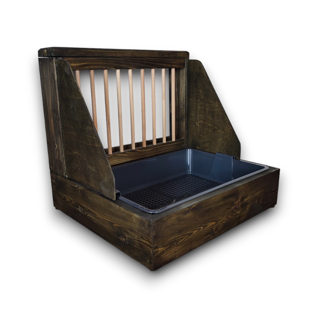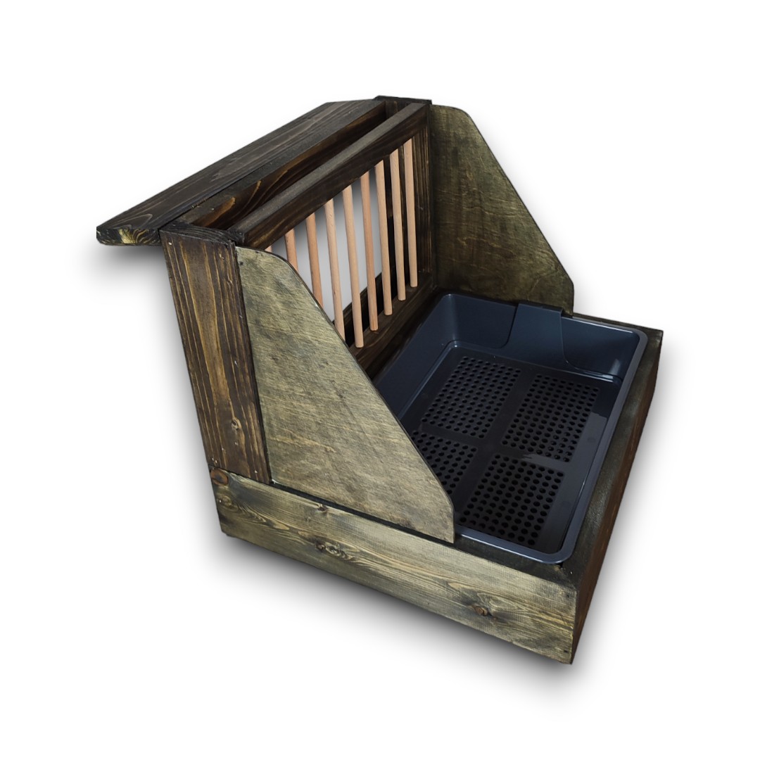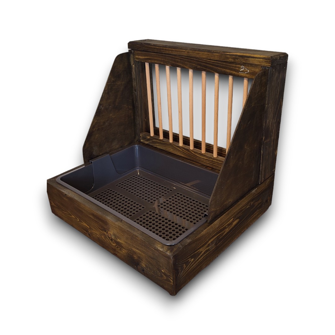 Co więcej, kuwetopaśnik został pokryty naturalnym, wysokiej jakości olejem do drewna w kolorze oliwki, który zapewnia dodatkową ochronę, ułatwia utrzymanie czystości oraz podkreśla naturalne piękno drewna.