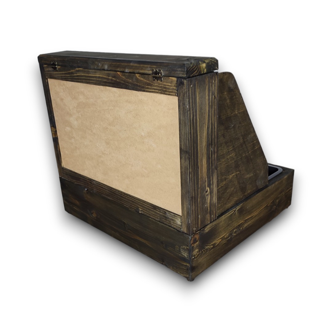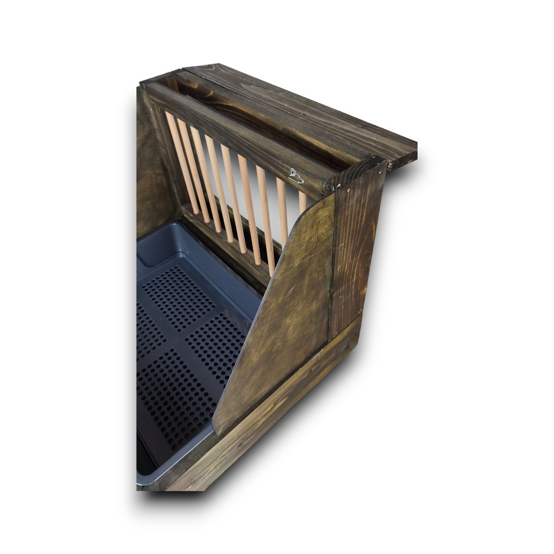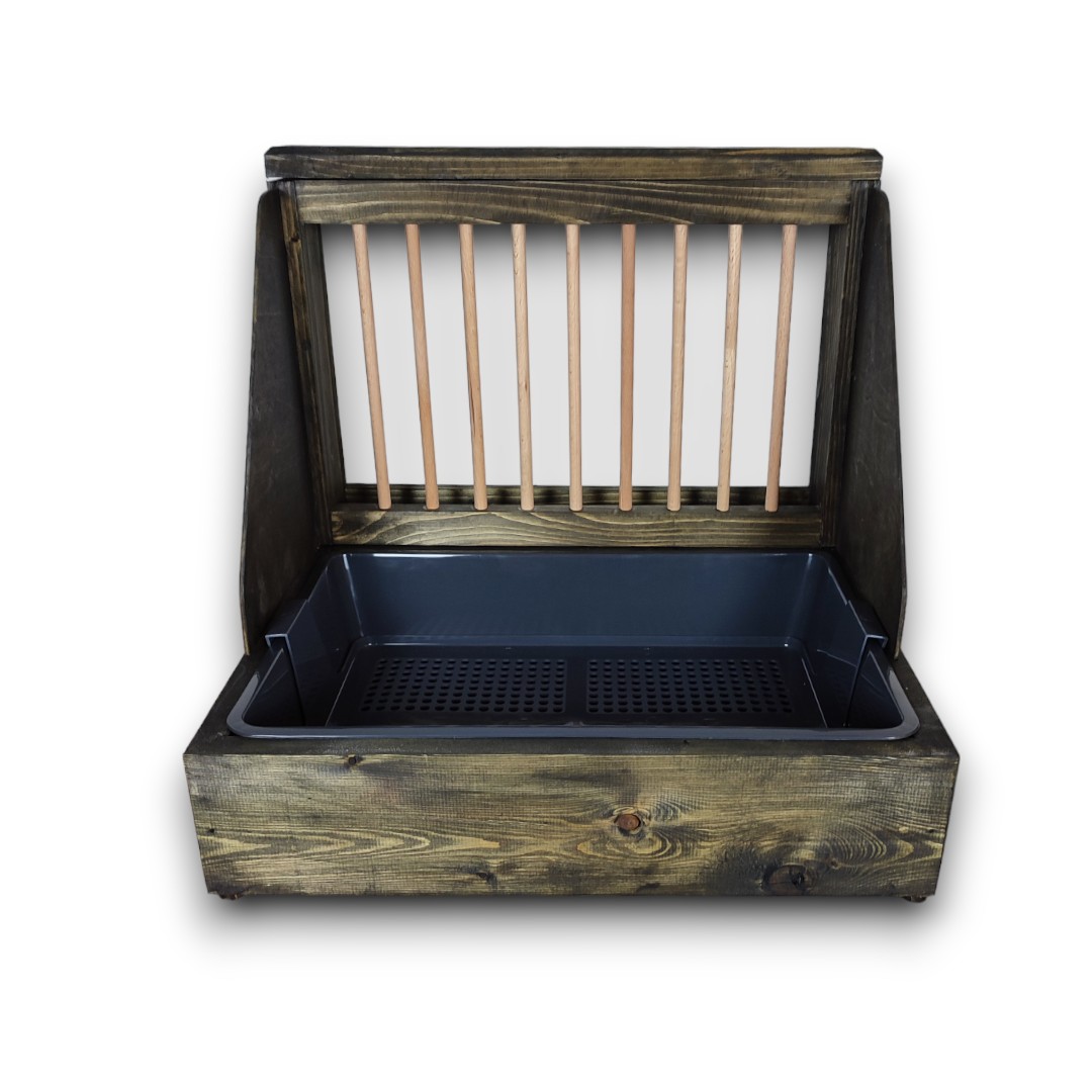 Co więcej, kuwetopaśnik został pokryty naturalnym, wysokiej jakości olejem do drewna w kolorze oliwki, który zapewnia dodatkową ochronę, ułatwia utrzymanie czystości oraz podkreśla naturalne piękno drewna.