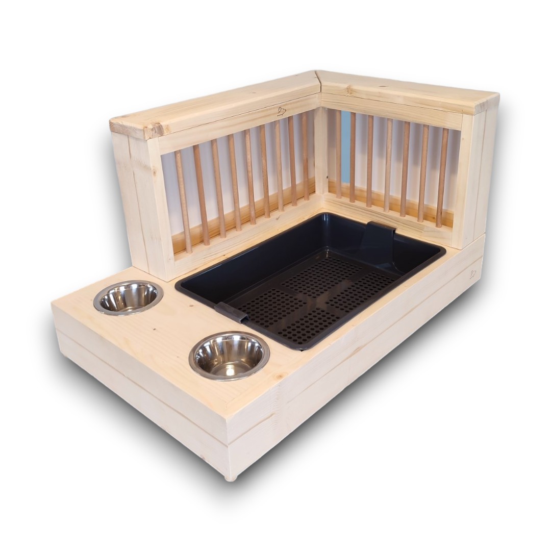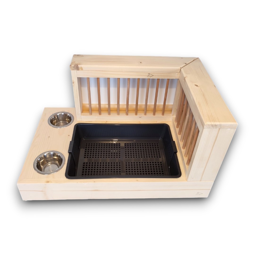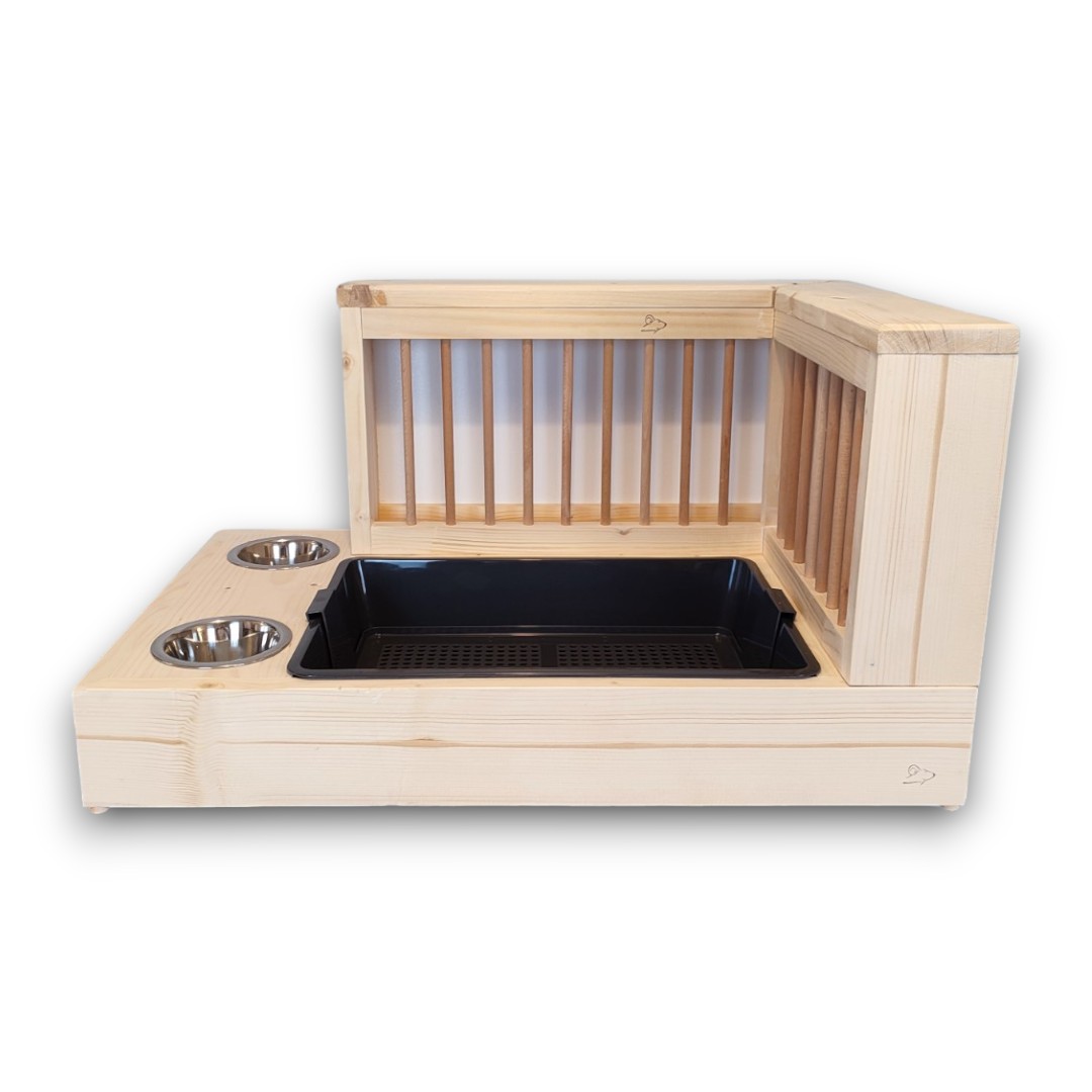 W zestawie znajdziesz nie tylko kuwetę z sitkiem, ale także dwie stalowe miseczki, które ułatwią codzienną pielęgnację zwierzaka.