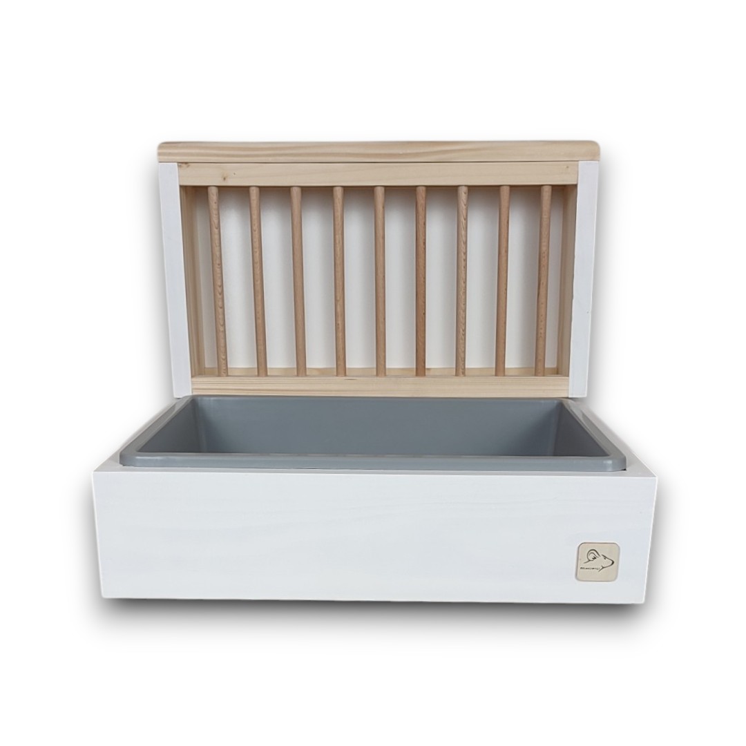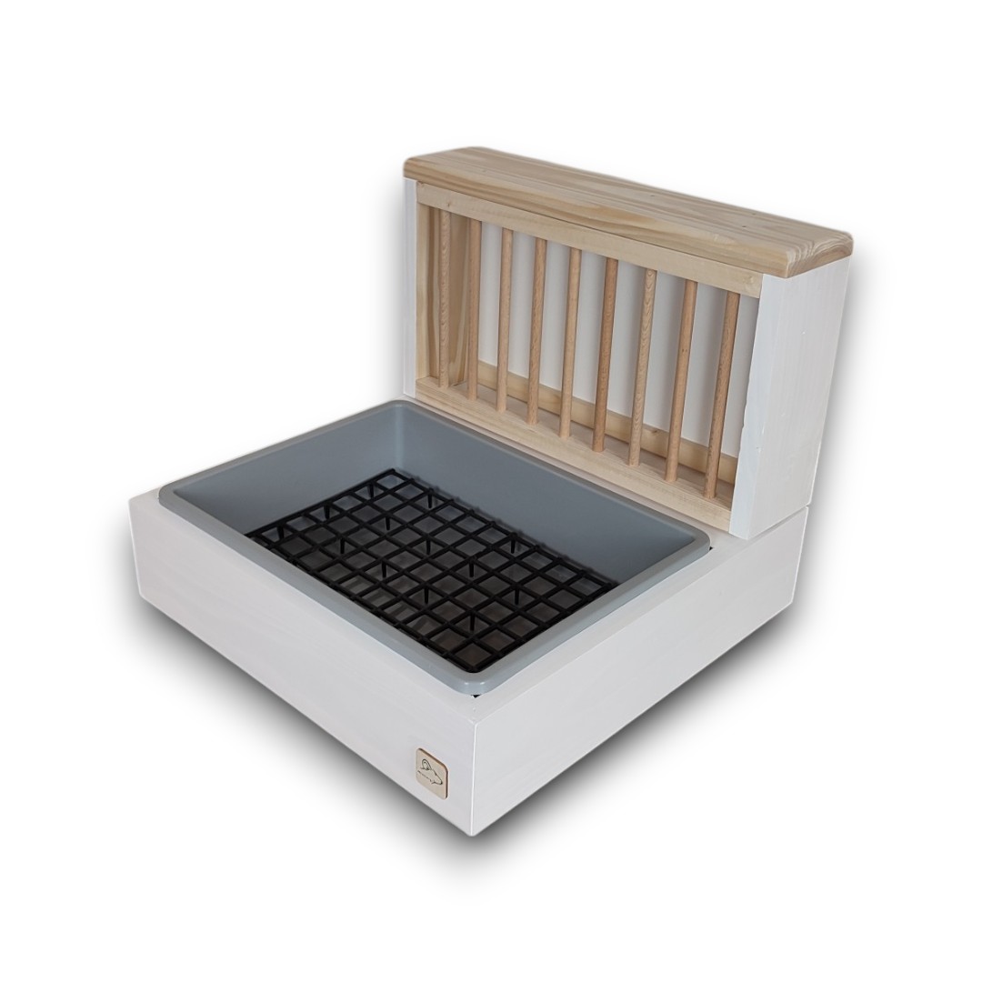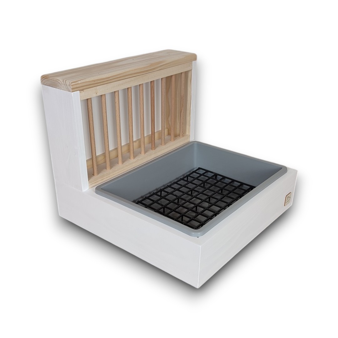 Kompletny zestaw – W zestawie znajdziesz wszystko, czego potrzebujesz: paśnik, obudowę na kuwetę, kuwetkę oraz wyciętą kratkę (ruszt).