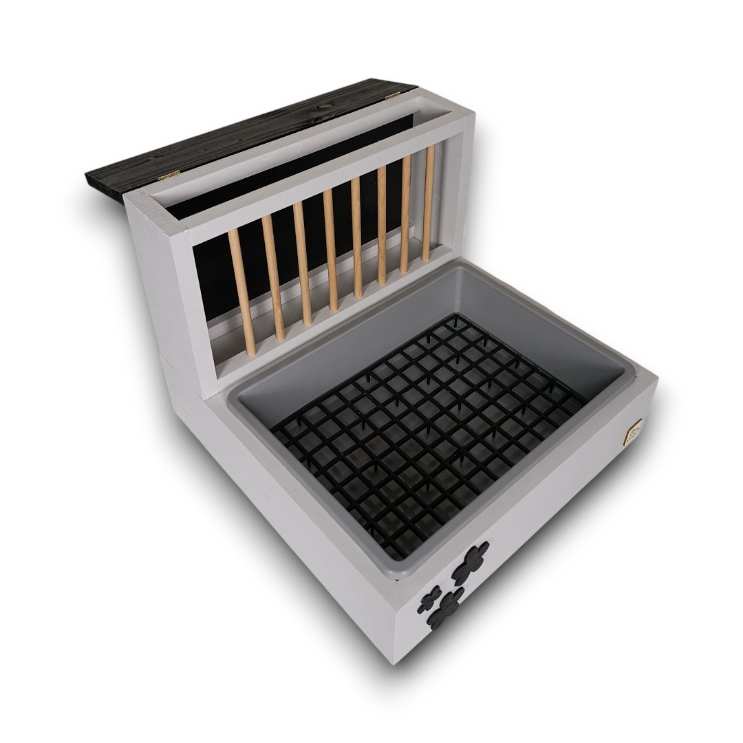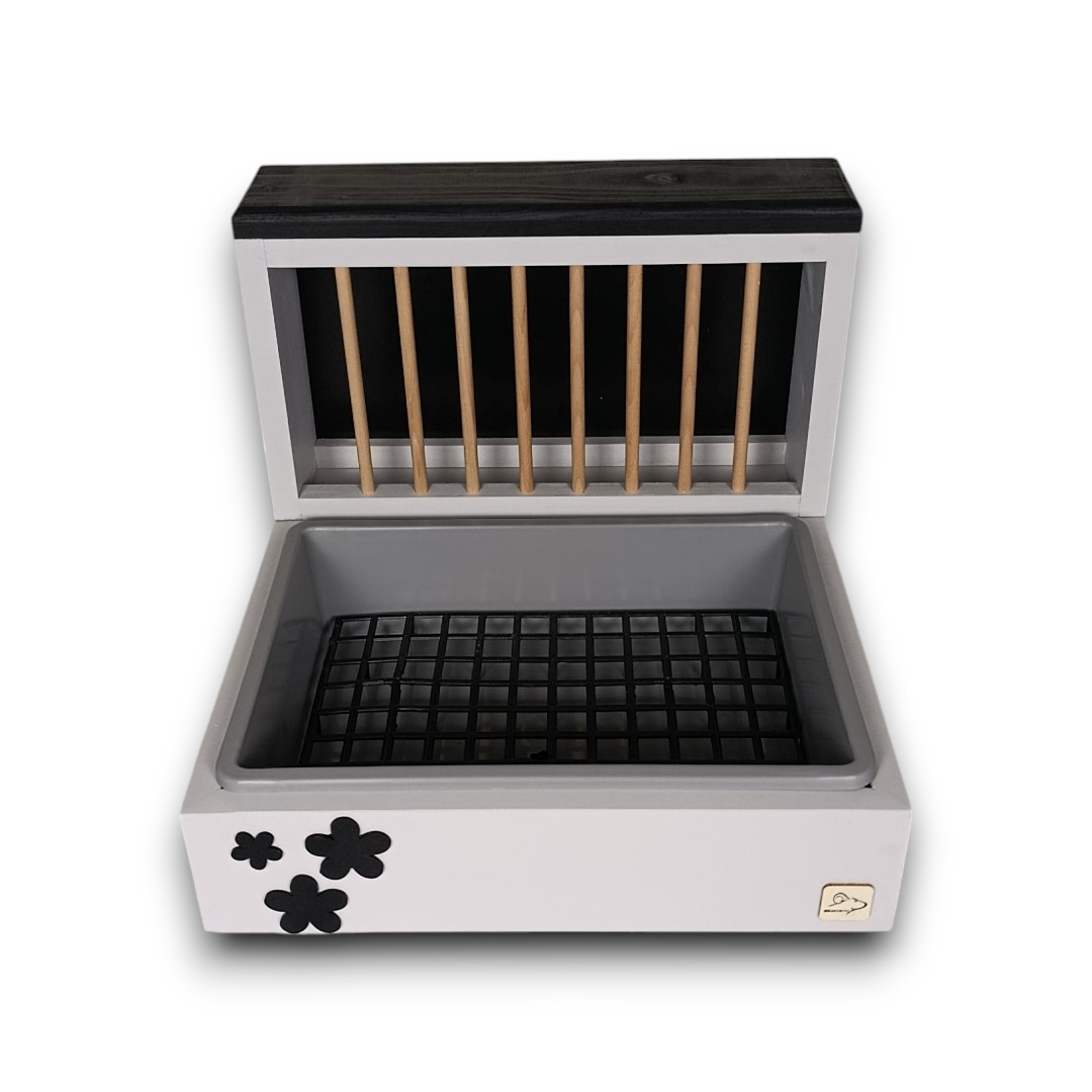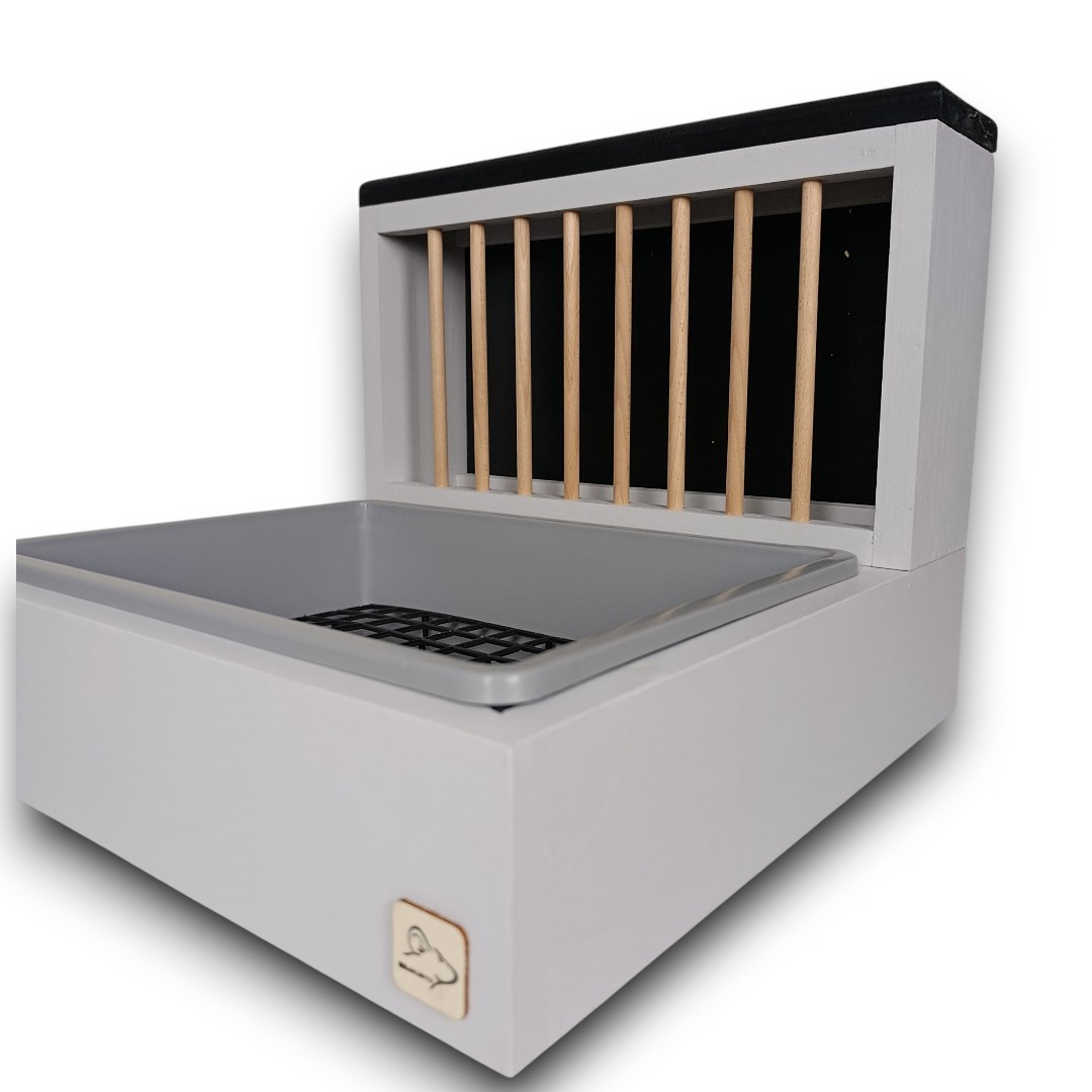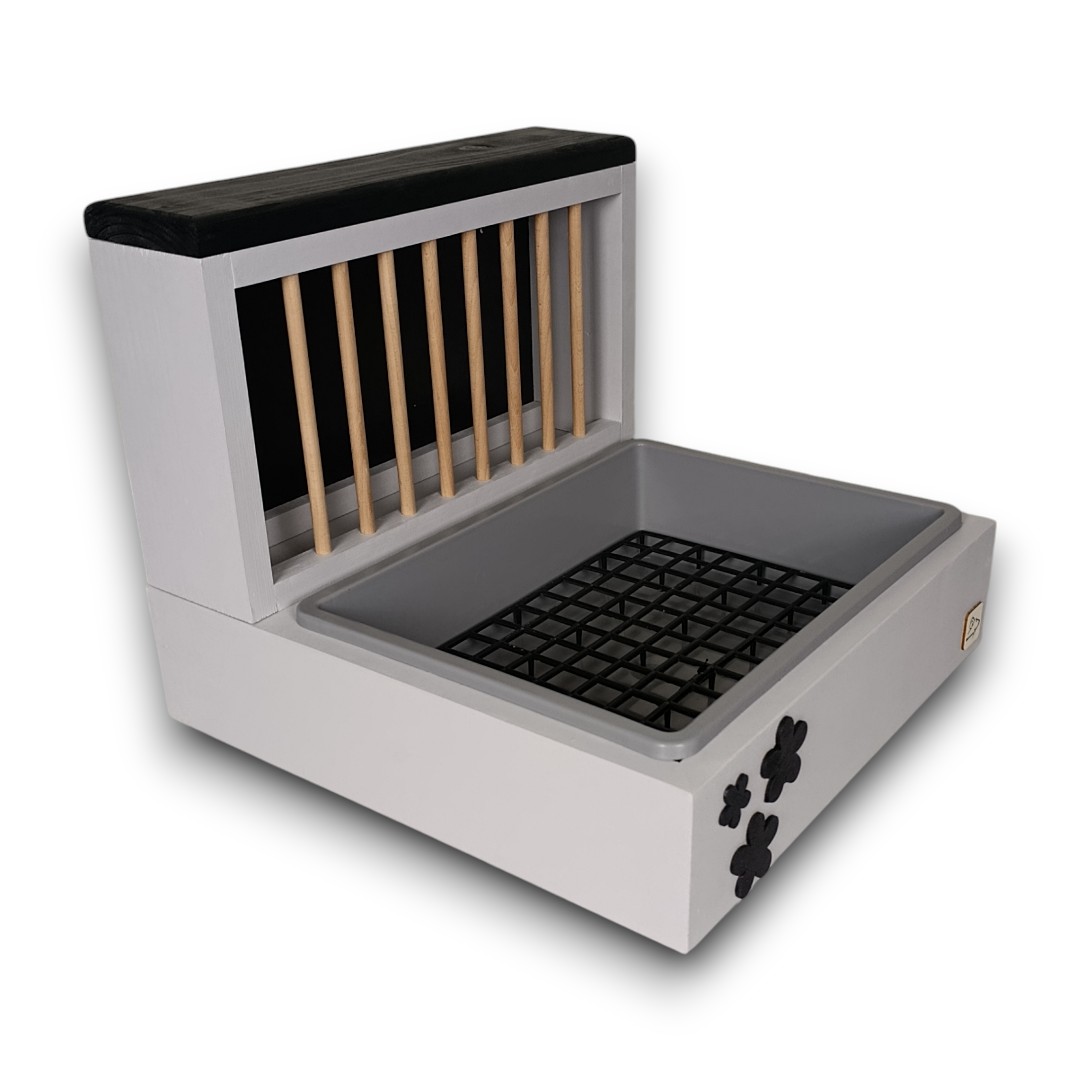 Wykonany z litej, solidnej deski i pomalowany najwyższej jakości, bezpieczną farbą mineralną, ten kuwetopaśnik to gwarancja trwałości i troski o dobro Twojego zwierzaka. Nie musisz nic montować – zestaw jest gotowy do użytku od pierwszej chwili!