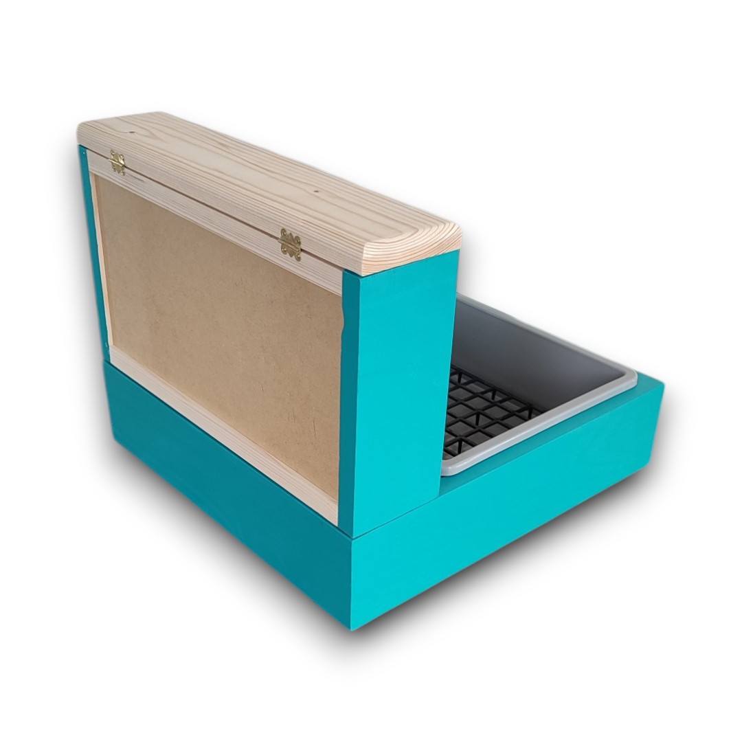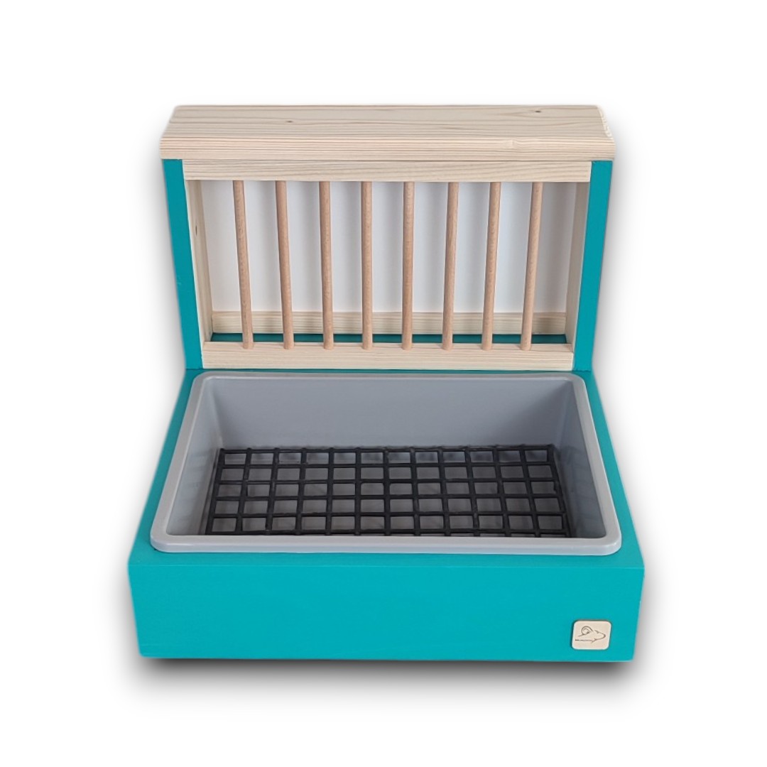 Kompletny zestaw – W zestawie znajdziesz wszystko, czego potrzebujesz: paśnik, obudowę na kuwetę, kuwetkę oraz wyciętą kratkę (ruszt).