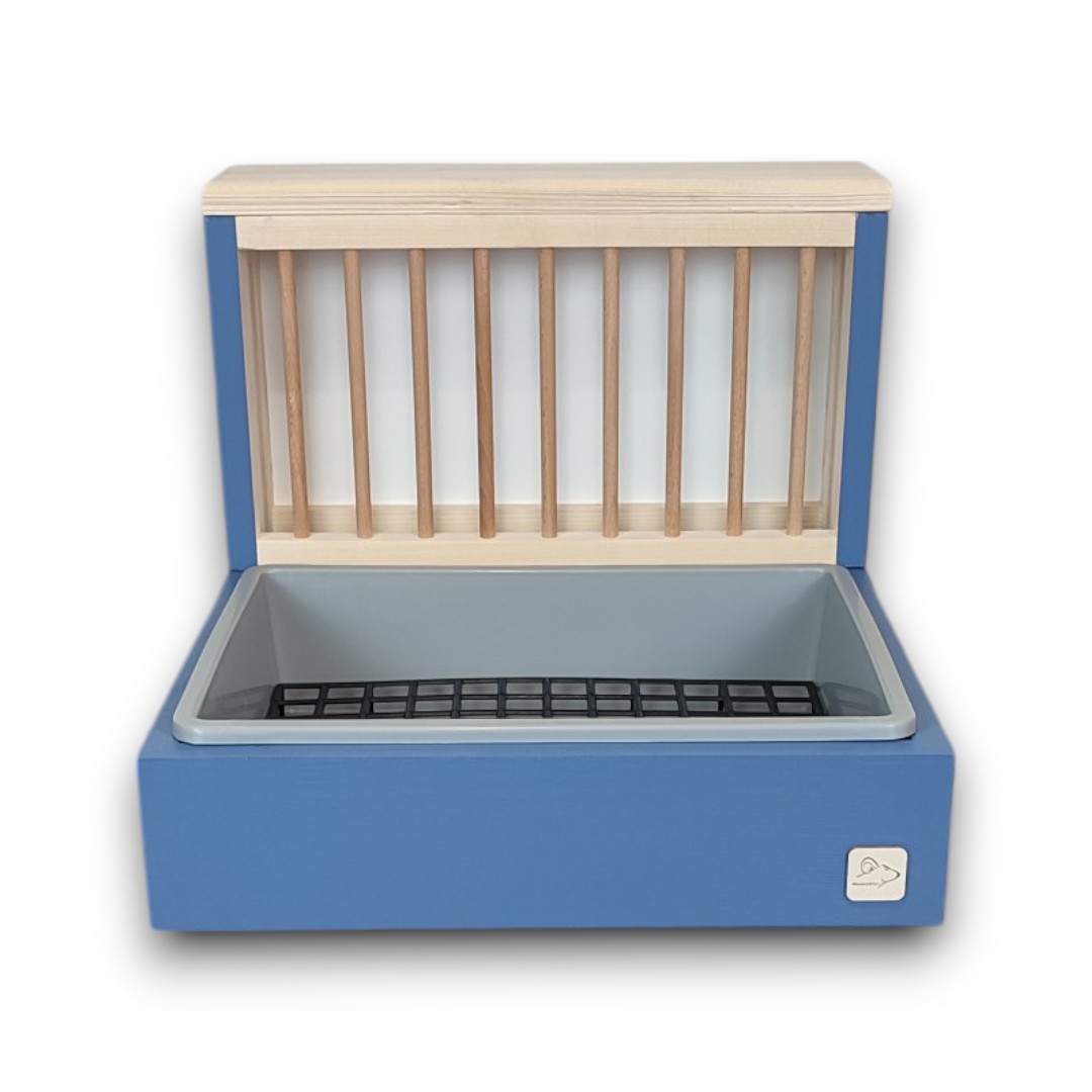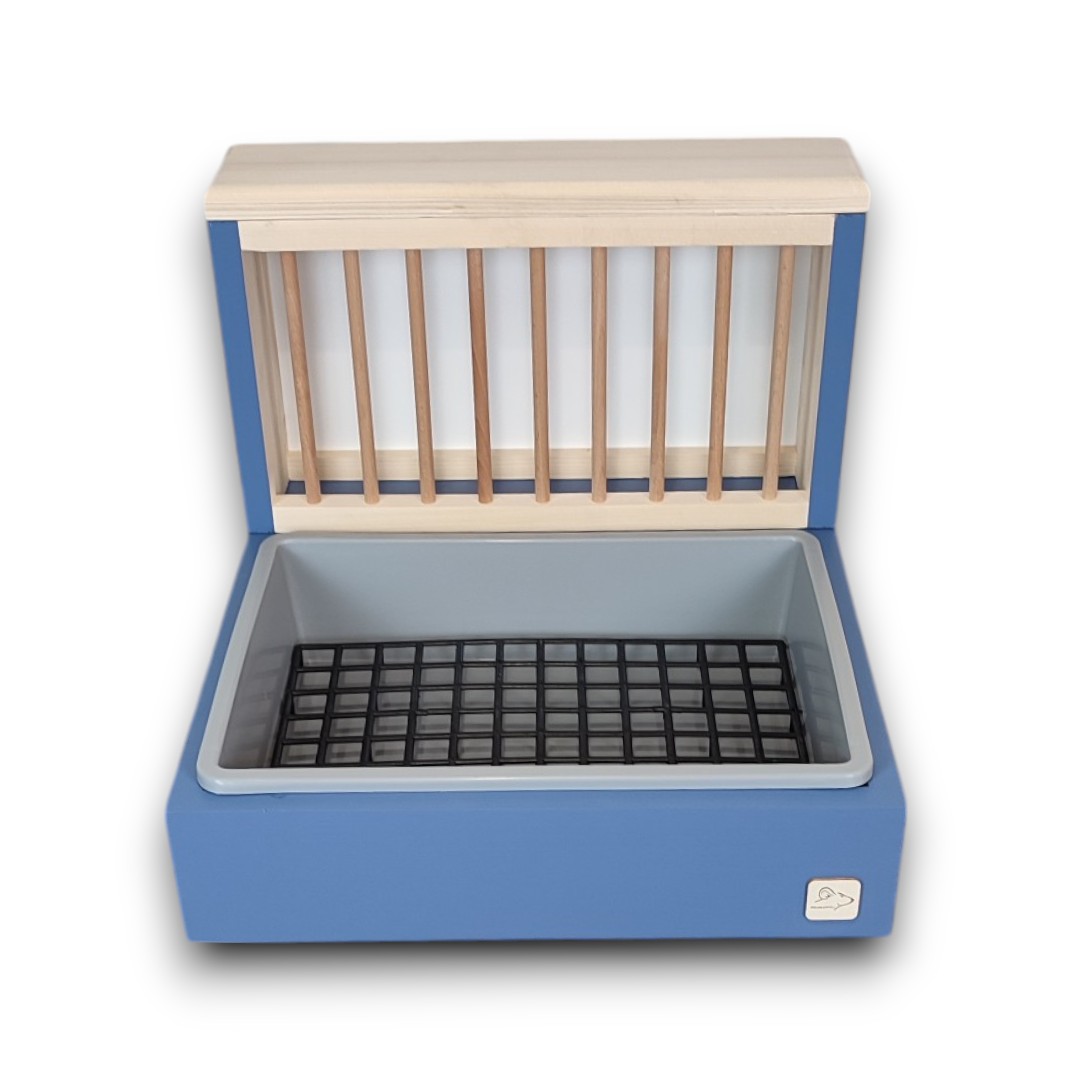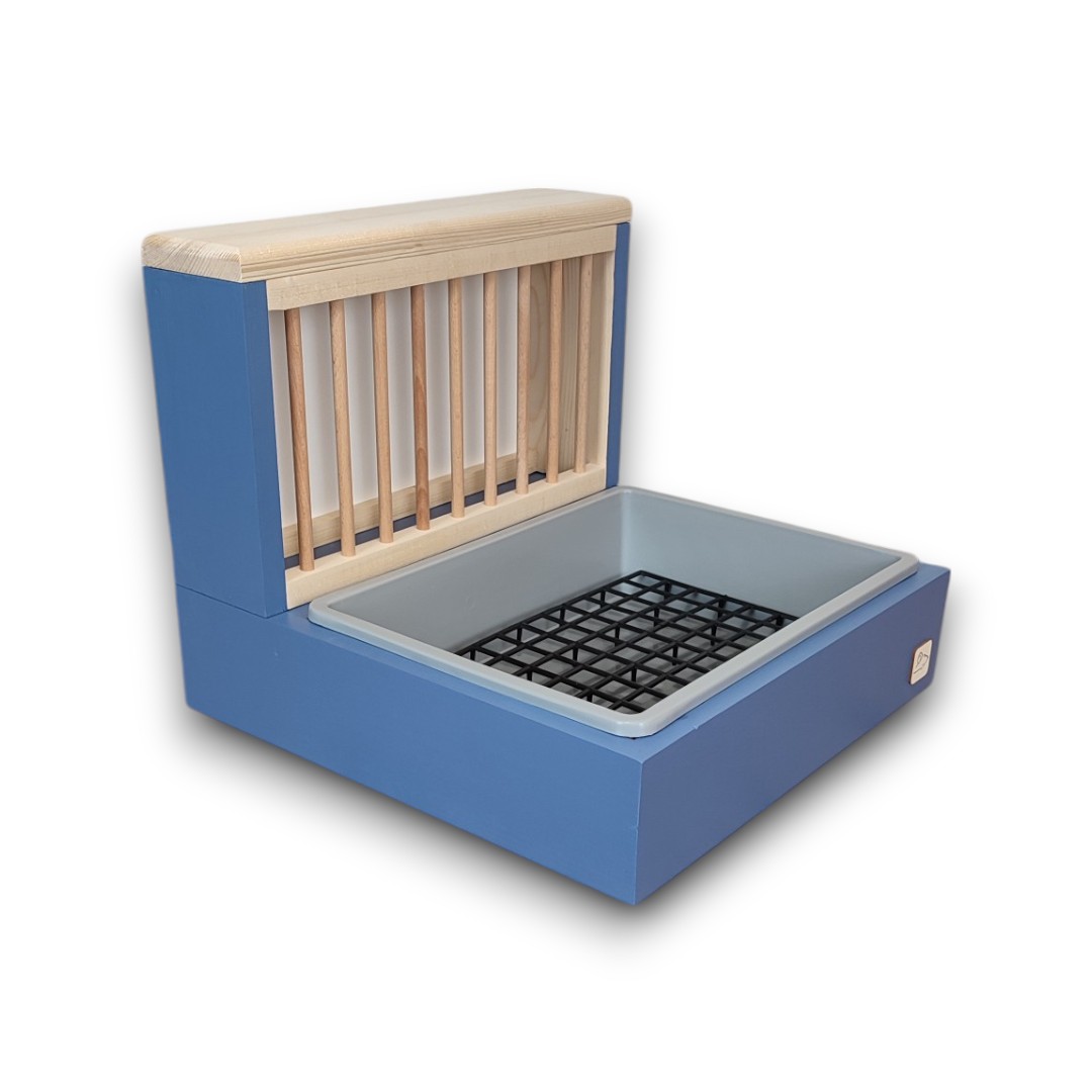Nasz kuwetopaśnik to połączenie trwałości i dbałości o komfort Twojego zwierzaka. Wykonany z bezpiecznego drewna i pomalowany farbą mineralną, zapewnia stabilność i długą żywotność.