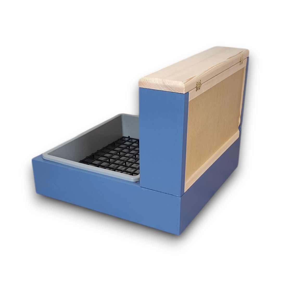 Kompletny zestaw – W zestawie znajdziesz wszystko, czego potrzebujesz: paśnik, obudowę na kuwetę, kuwetkę oraz wyciętą kratkę (ruszt).