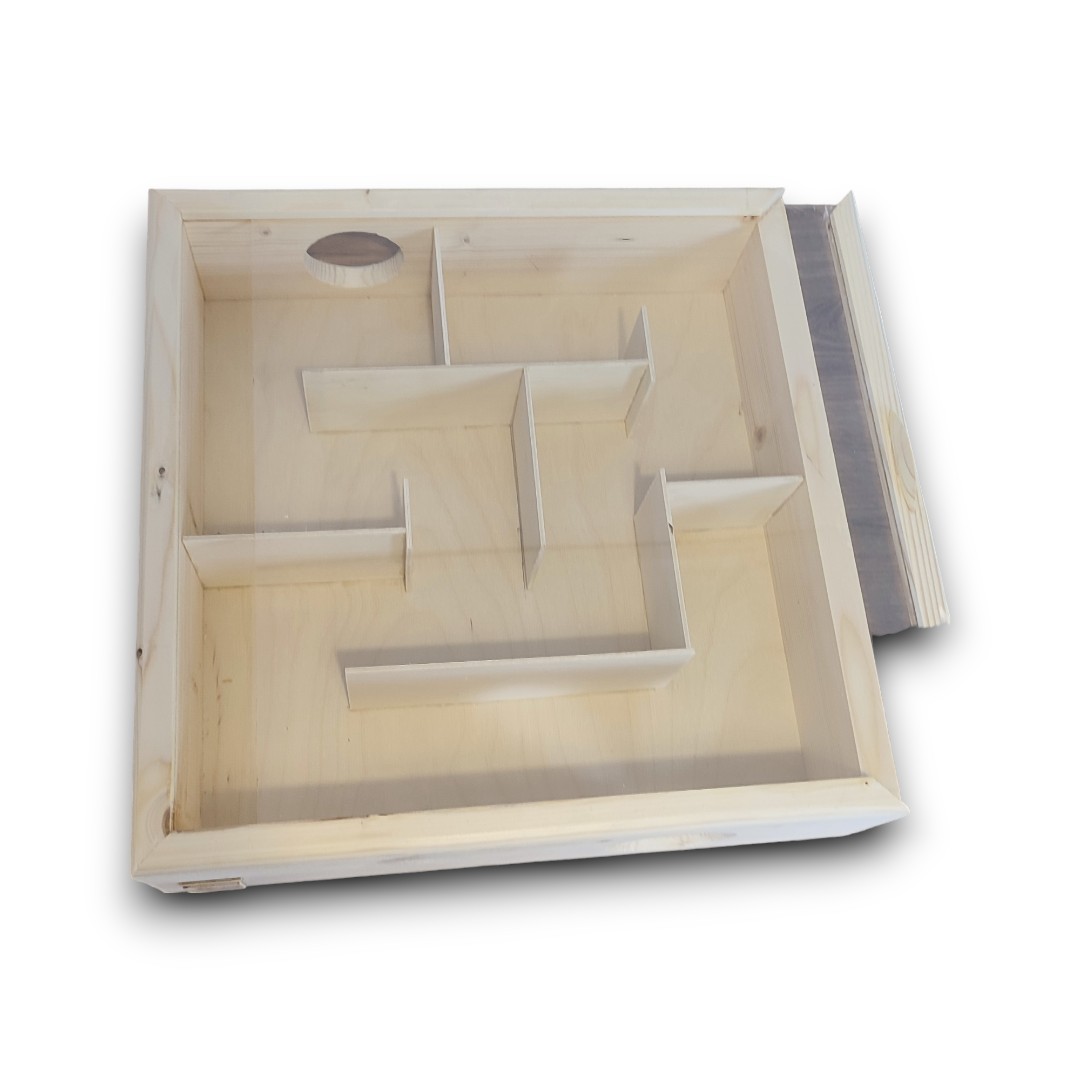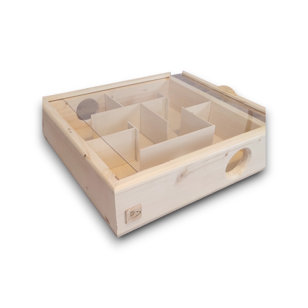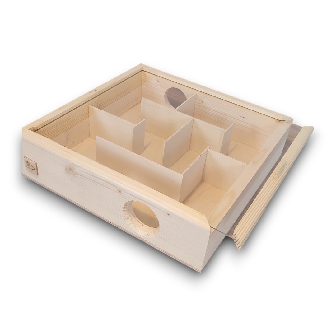 Wykonany z drewna i pokryty wysuwanym przezroczystym akrylem, zapewniającym doskonałą obserwację ruchów chomika, szczrka lub innych gryzoni. Twój pupil będzie mógł się doskonale bawić i spełniać swoje naturalne instynkty.