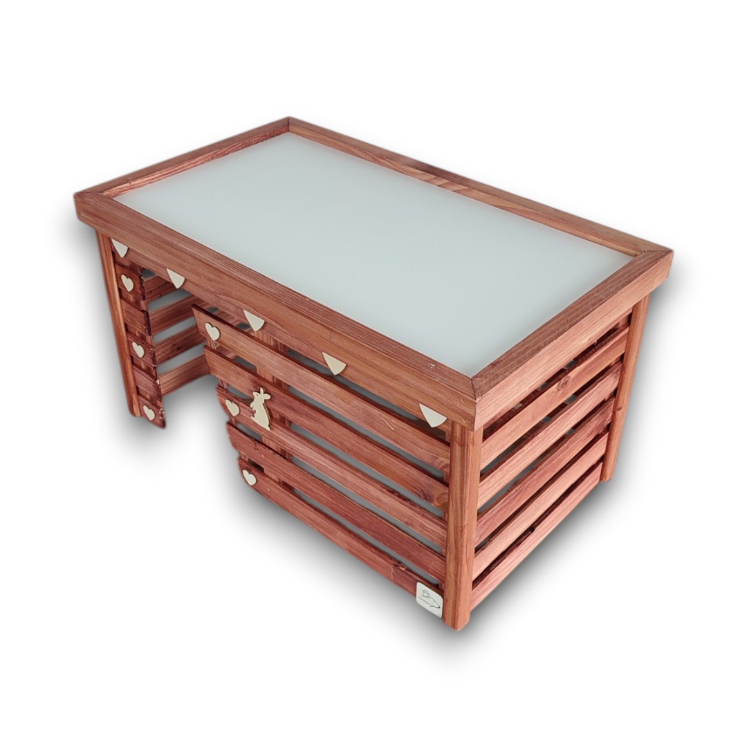 Dzięki solidnej konstrukcji i starannym wykonaniu, ten uroczy domek będzie służył Twojemu pupilkowi przez wiele lat, zapewniając mu bezpieczne i przytulne miejsce do odpoczynku.